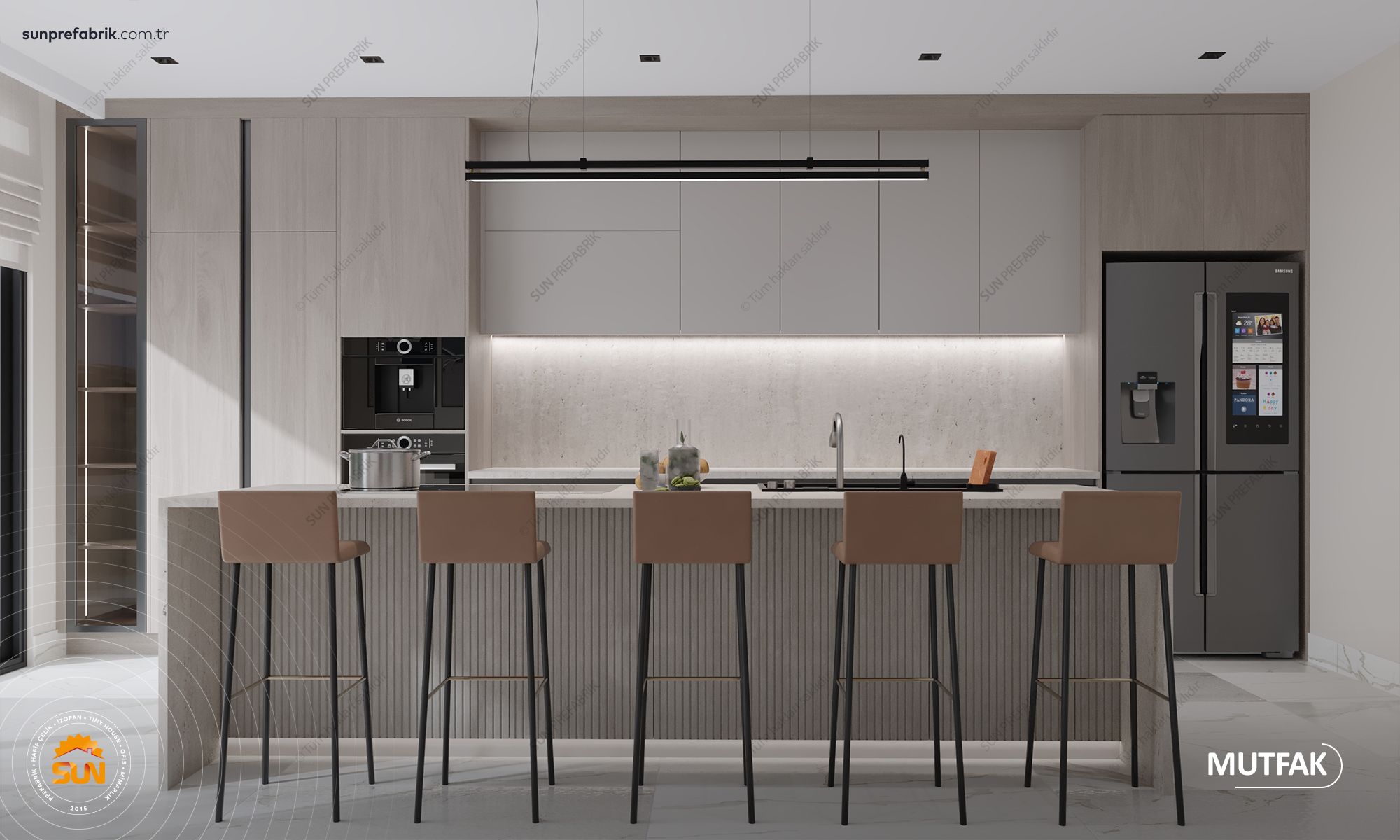 Projeye Uygun Lake Alt ve Üst Mutfak Dolabı ve Akrilik Mermeri