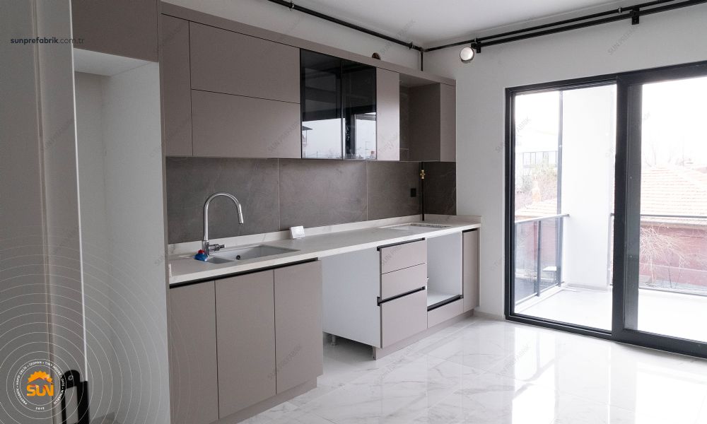Projeye Uygun Lake Alt ve Üst Mutfak Dolabı ve Akrilik Mermeri