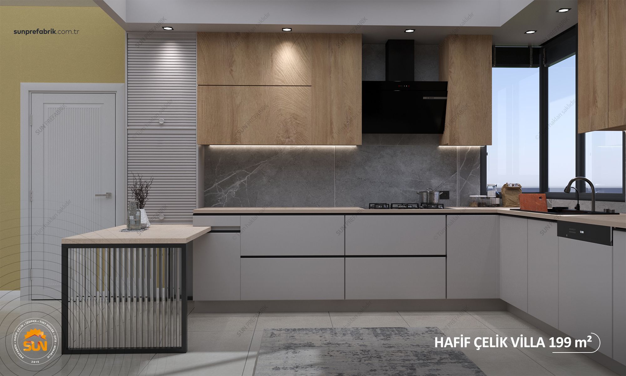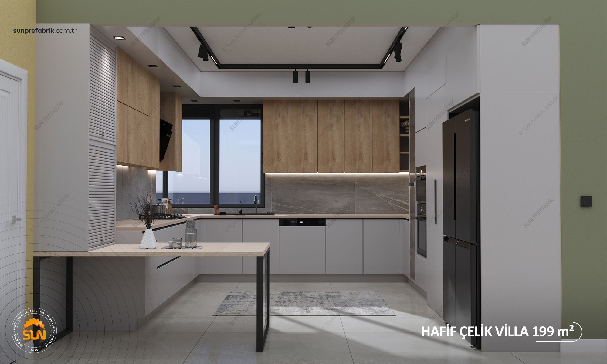 Projeye Uygun Lake Alt ve Üst Mutfak Dolabı ve Porselen Tezgahı